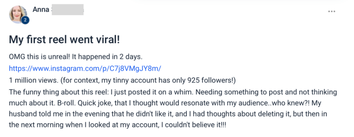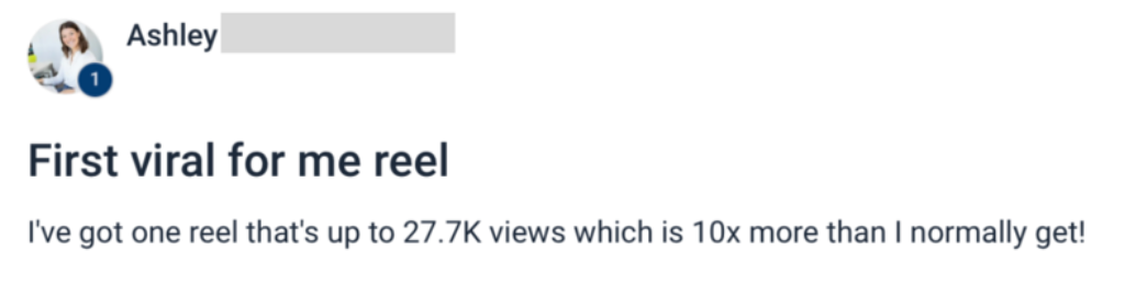 "I’ve posted a few posts so far as I’m working through the course. I’ve had record numbers of shares of my posts in the style that Nicole recommends!"